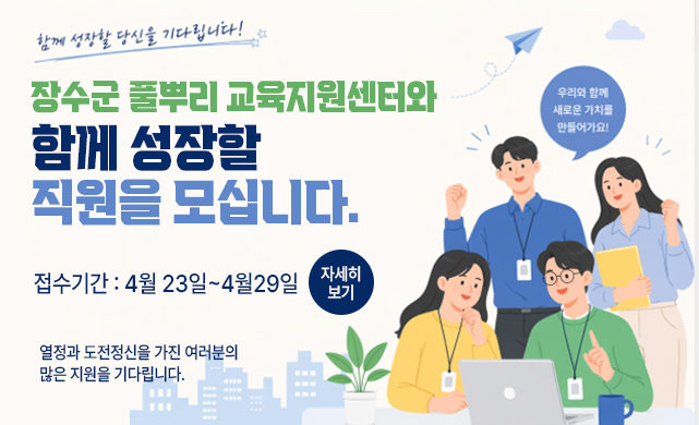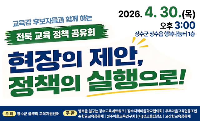 마을교육활동가 양성, 체험·진로 교육 지원 등을 통해 장수 교육의 질적 도약을 추진합니다.